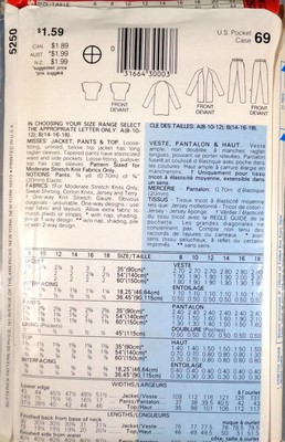 Butterick Pattern 5250 Misses 039 Jacket Pants Amp Top Size 14 16 18 Ebay